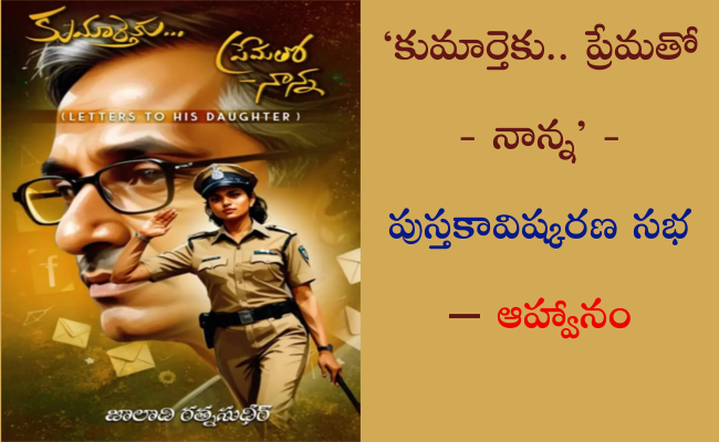 అంతర్జాతీయ కుమార్తెల దినోత్సవం పురస్కరించుకొని – జాలాది రత్న సుధీర్ రచించిన – ‘కుమార్తెకు.. ప్రేమతో – నాన్న’ పుస్తకావిష్కరణ సభ 27 సెప్టెంబర్ 2025 శనివారం సాయంత్రం రవీంద్ర భారతి కాన్ఫరెన్స్ హాల్లో జరుగుతుంది.