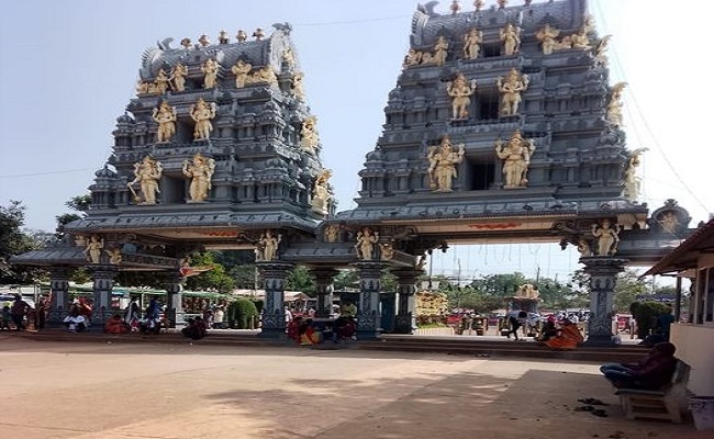 బ్యాగులు ఆఫీసులో పెట్టించాడు ఎ.ఇ.వో. మా వెంట ఒకతన్ని పంపించాడు. ముందే రెండు జంట గోపురాలు ఉన్నాయి. నల్ల రాతి మీద లేత పసుపురంగులో దేవతల విగ్రహాలు చెక్కారు.