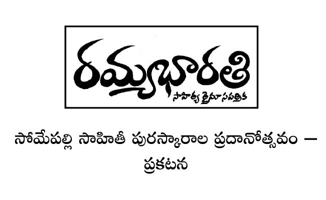 అక్టోబర్ 30 ఆదివారం ఉదయం 10 గంటలకు విజయవాడలోని టాగూర్ లైబ్రరీలో సోమేపల్లి సాహితీ పురస్కారాల ప్రదానోత్సవం సభ జరగనున్నది.